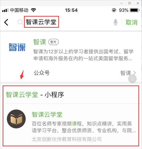 A. 在微信小程序中搜索小程序 智课云学堂或者扫描以下小程序码