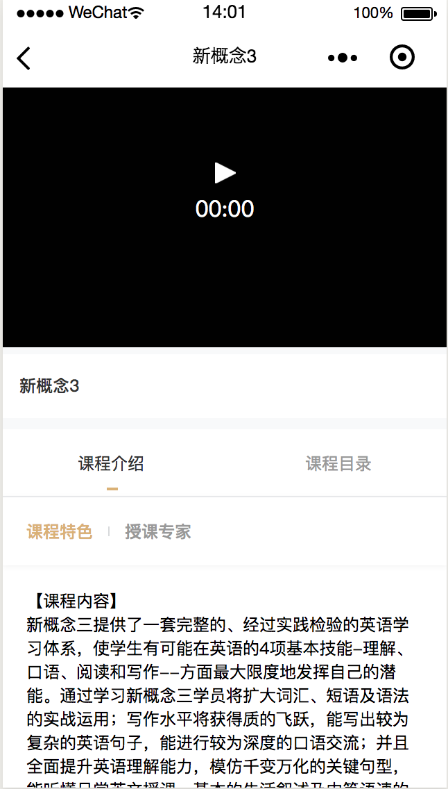 C. 课程介绍中有课程特色以及授课专家的介绍
