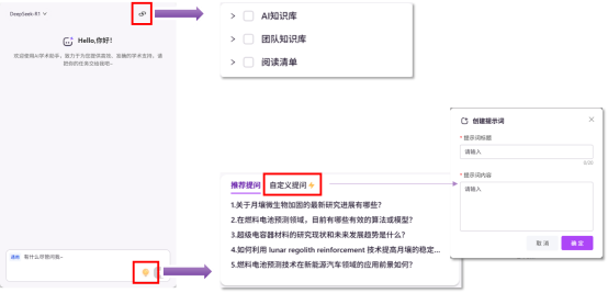 构建智能问答体系,提供学术、科研、课程、实验等多类型助手,实现全场景即时响应,用户可以根据学习需要,自主选择公共AI知识库进行知识问答,AI科学伴学,帮助用户提升自主学习与知识整合能力。