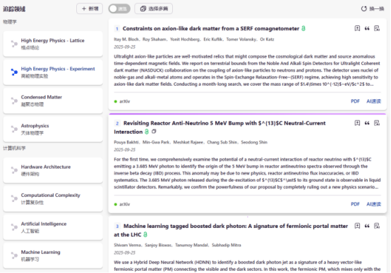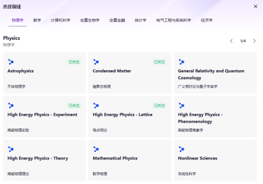 根据用户的兴趣领域,追踪来自arXiv的领域内容并推送相关的预印本资源。