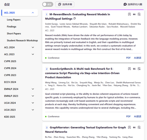 实时捕捉全球顶级学术会议最新成果和科研动态,迅速提炼核心要点与趋势。