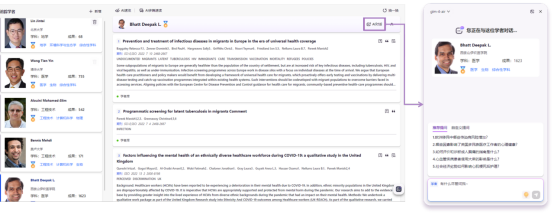 基于学者科研成果构建“学者数字分身“,支持智能对话,快速把握其研究方向与学术观点。