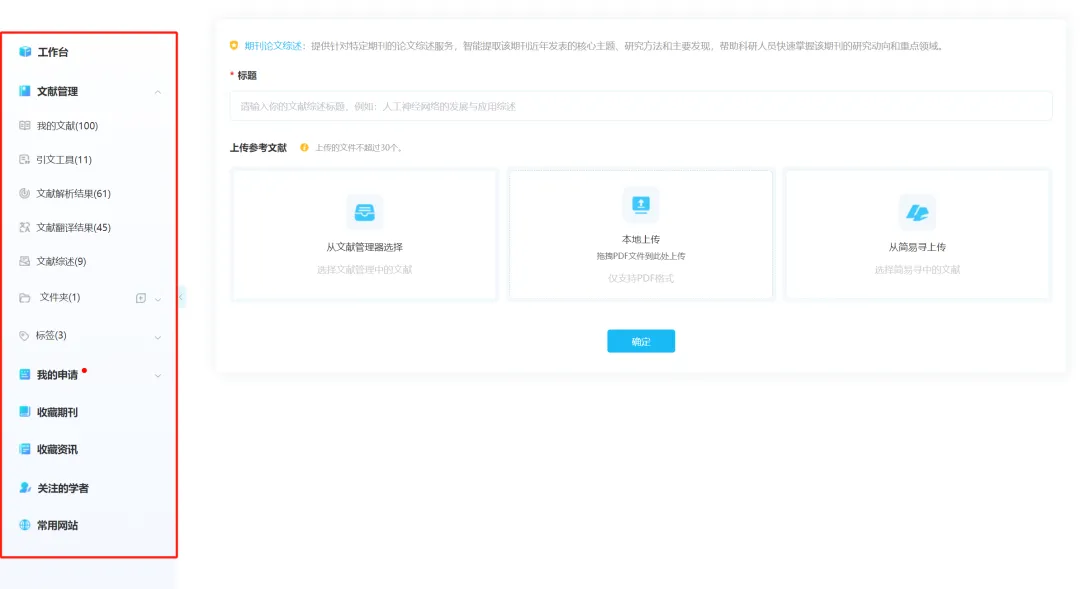 自由管理文献:可上传 / 导入下载的中外文文献,自定义文件夹分类、添加个性化标签,实现文献精细化管理,找文献再也不用翻遍文件夹;